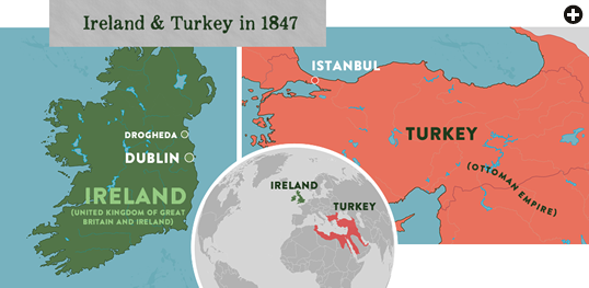 Le Sultan Abdulmecit, n’étant pas resté insensible au sort des Irlandais, déclara alors son intention d’envoyer l’équivalent de 10,000 sterling aux irlandais.