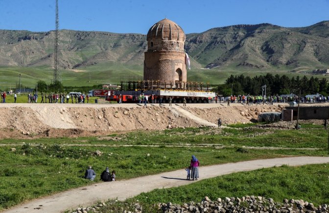 Le déménagement des monuments a commencé. Lors d’une opération spectaculaire, en mai, les autorités ont déplacé le mausolée de Zeynel Bey, construit au 15e siècle en hommage à l’une des figures de la tribu Ak Koyunlu qui contrôlait alors l’Anatolie orientale.