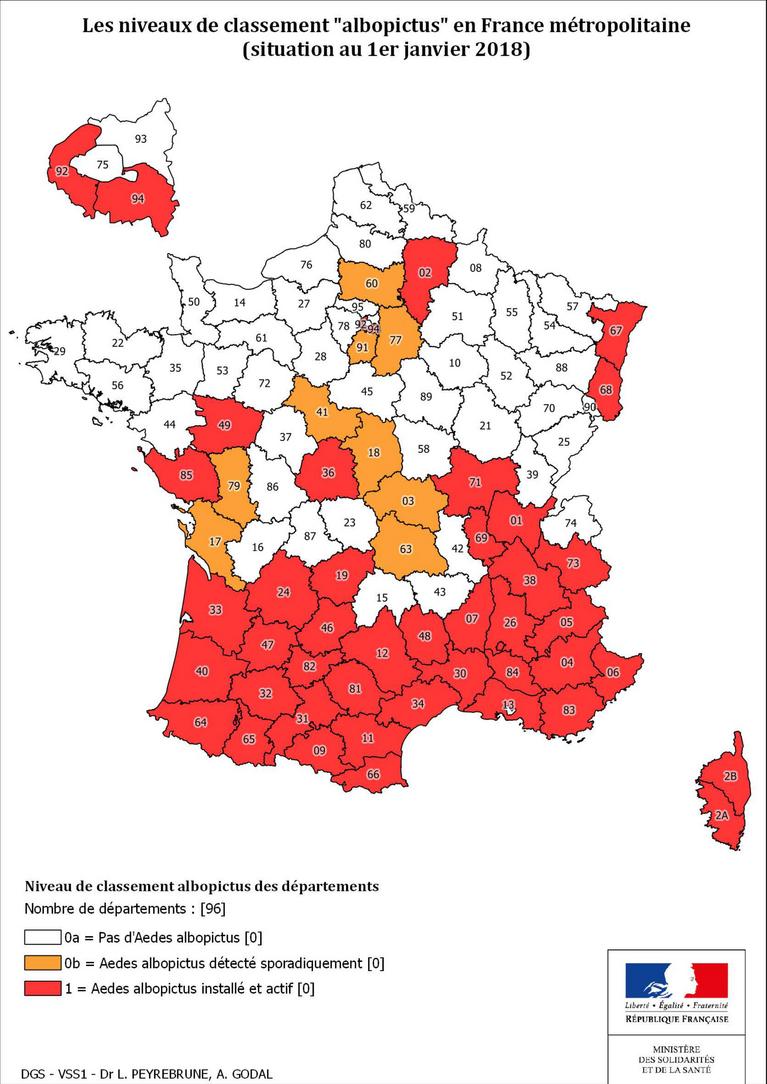 Ci-dessus, la carte diffusée au 1er janvier 2018 par le ministère des Solidarités et de la Santé.