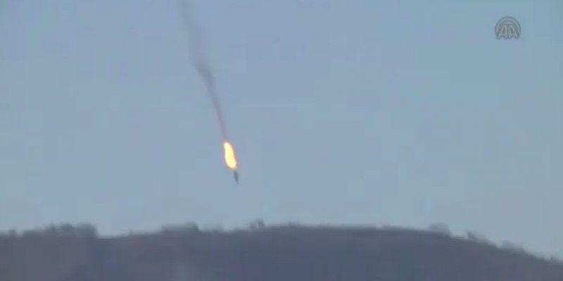 Un avion russe plonge après avoir été abattu par l’aviation turque, près de la frontière turco-syrienne, le 24 novembre 2015.