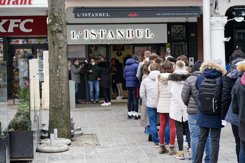 Comme elle, quatre étudiants de commerce ne sont pas venus pour des problèmes financiers, mais pour goûter un peu au monde d’avant. "On est censés être en cours en visio pour apprendre à faire nos CV, justifie l’un d’eux, mais bon, dans cette période, faire des CV... on a l’impression que ce n’est pas vraiment utile." Ses trois copains sourient à moitié jaune. "On a l’impression de passer à côté de nos études. On ne peut ni sortir, ni faire la fête...", renchérit un autre, avant d’ajouter : "Sans vous mentir, quand on sait qu’on ne voit pas nos familles pendant un moment, on brise le couvre-feu pour se voir." "Surtout, on se teste tout le temps !", rectifie un autre.