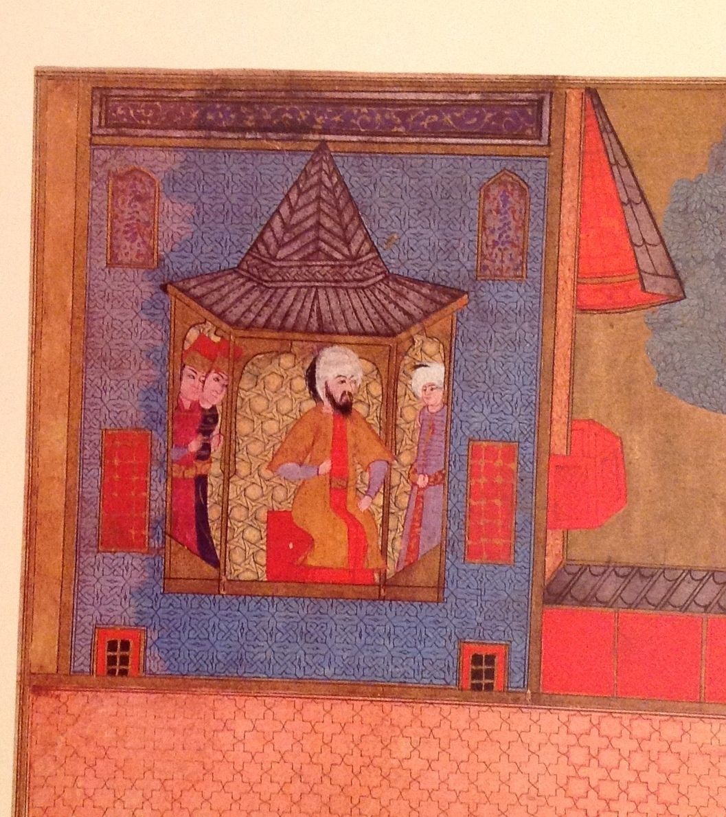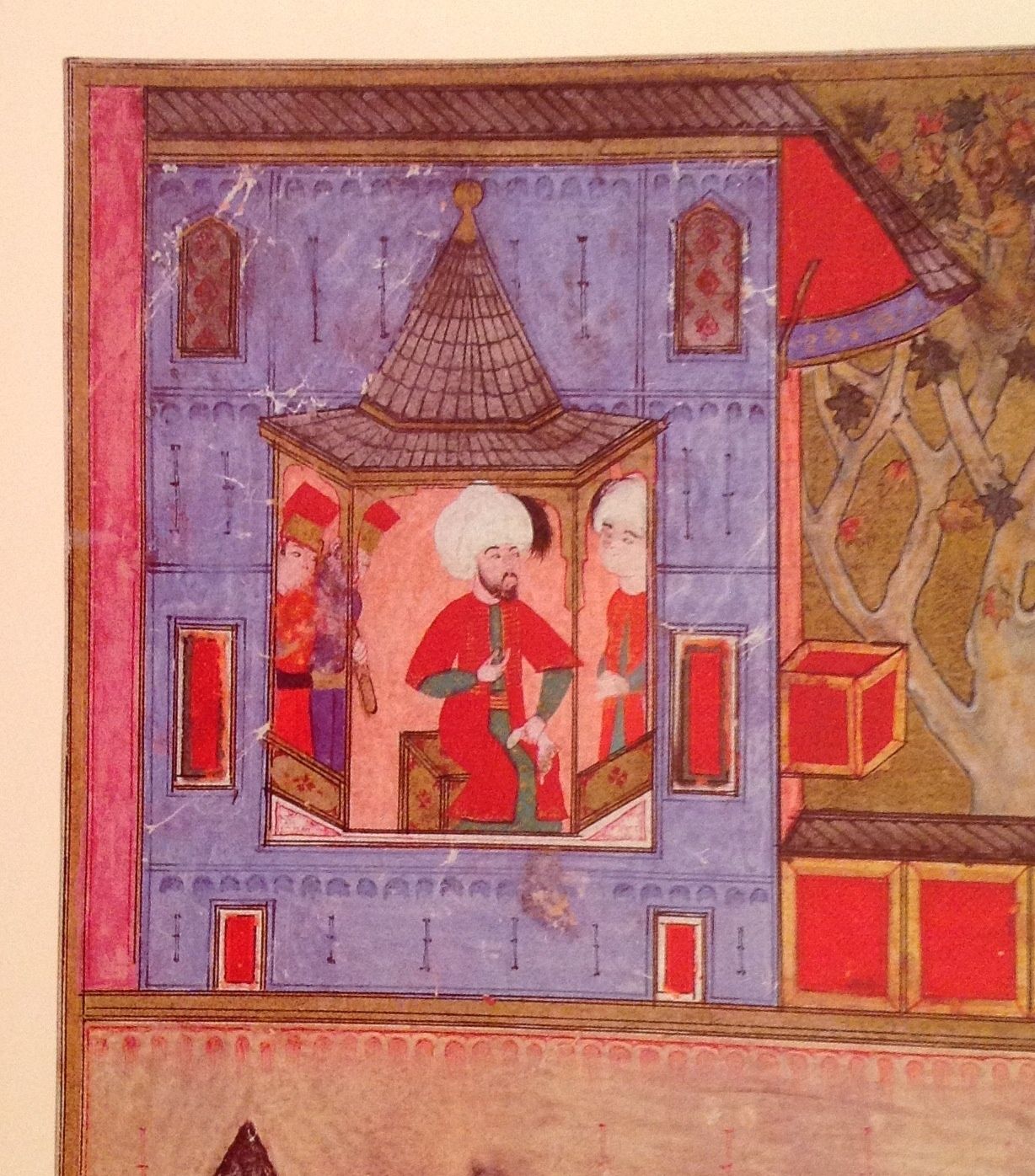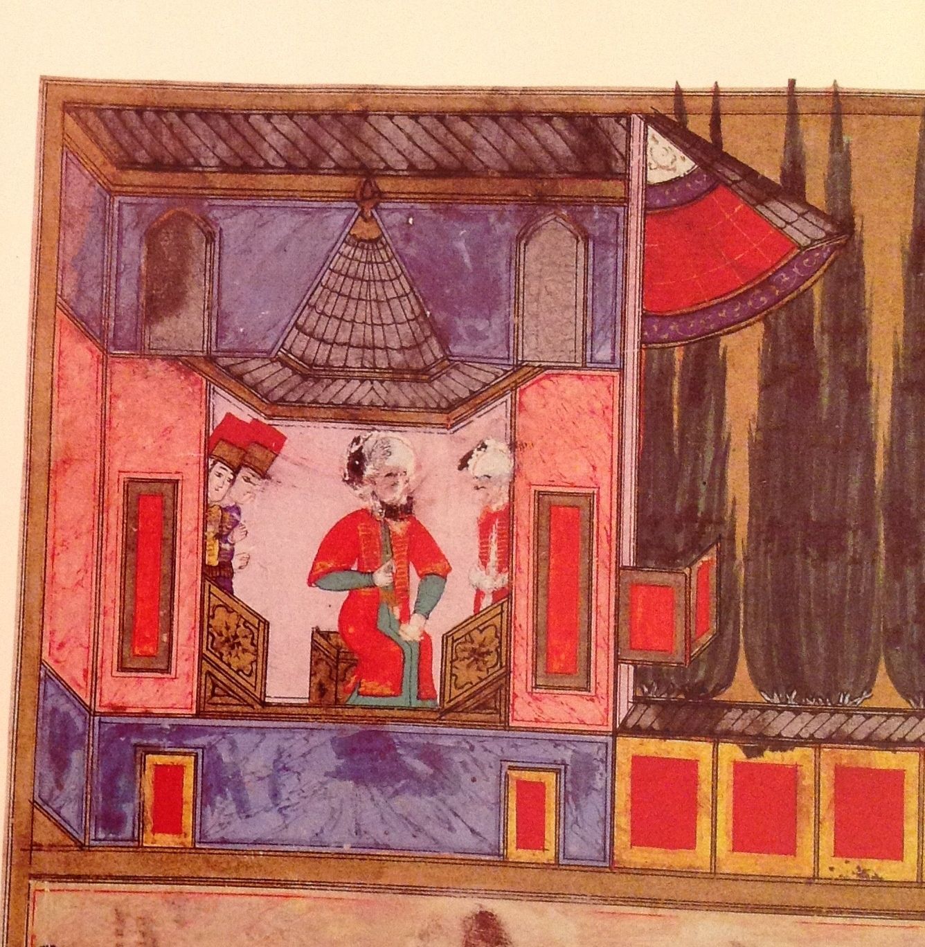 C’est précisément dans le manuscrit « Surname – i - Humayun » narrant ces fêtes et illustré de 427 miniatures que l’on peut voir les représentations différentes de la loge impériale que je vous laisse admirer, comparer, savoure en ainsi que les différents12 miniatures , pour jouer au jeu des différences des "costumes et poses du Sultan".
